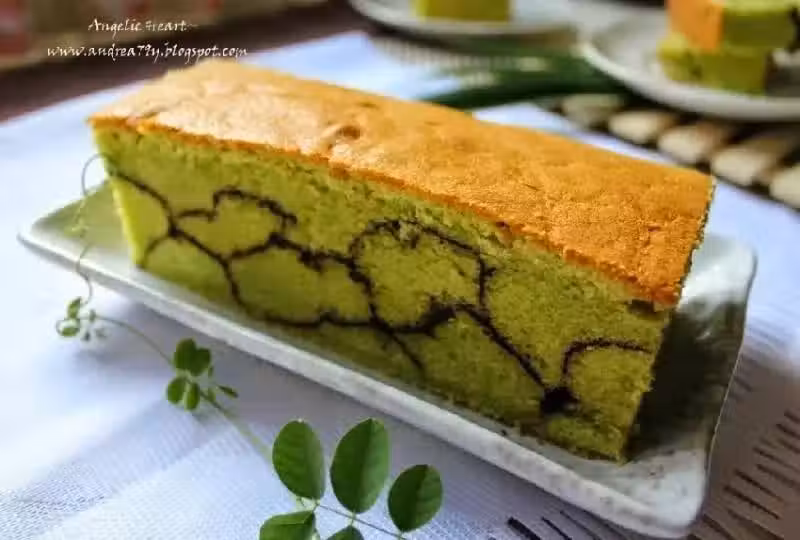 這次,我終於做出重疊的花紋了,除了蛋糕糊要跟著以下食譜里的步驟圖外,切蛋糕時要直切成長薄片,然後才切成小片。班蘭汁做的牛油蛋糕真的好香,喜歡~
