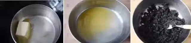 8 . 調拌均勻即成黑芝麻餡。把做好的黑芝麻餡用保鮮膜包好放入冰箱冷藏。