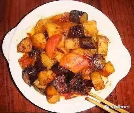 1、茄子,土豆切塊分別用右煎成金黃色。