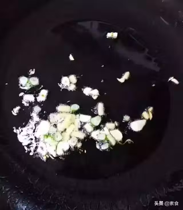 6、姜煸出香味後, 鍋中放入素蚝油, 白糖,鹽,生抽,味精攪拌均勻之後,倒入香菇。