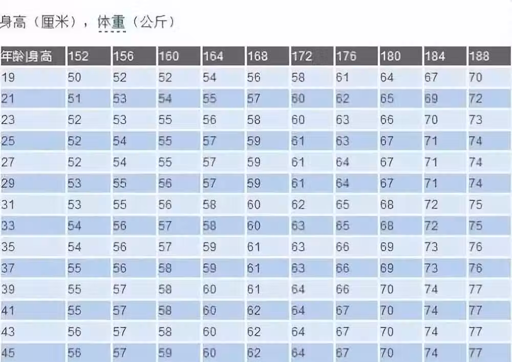 男性152-188cm標準體重對照表,如果你「達標」,恭喜你還不算胖。