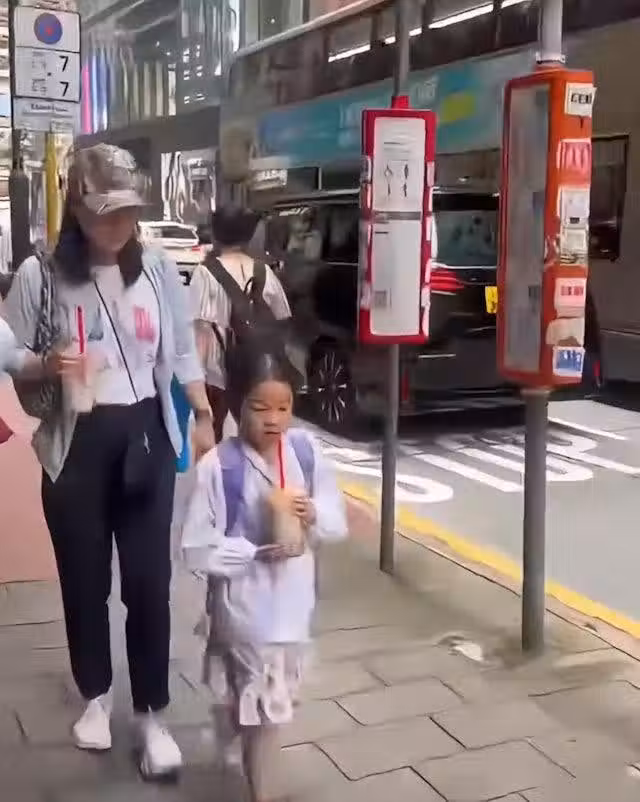 郭晶晶三母子街頭喝珍珠奶茶,各捧一杯暢飲,衣食樸素無保鏢護駕