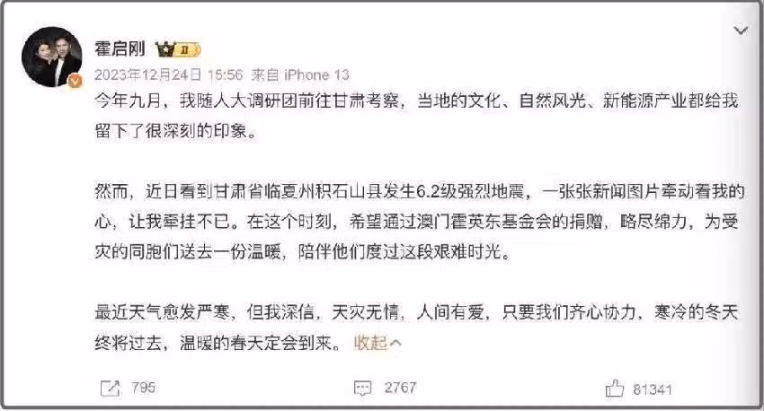 郭晶晶霍啟剛突然官宣!男方深夜發文 :愛你11年,還是走到這一步!
