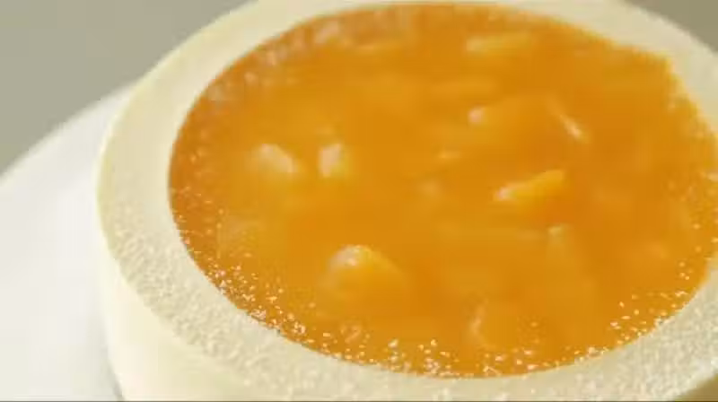 冷藏完後取出,用熱毛巾敷或電風吹脫模,再撒上一圈糖粉,精緻可愛的芒果巧克力芝士蛋糕,完成!