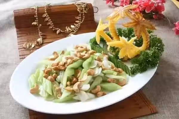原料:西芹、百合、腰果、枸杞