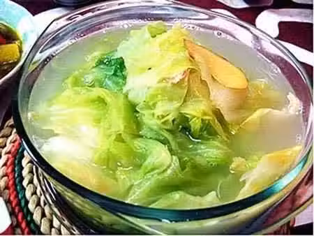 做法:準備5g老薑、百合30g、大白菜300g,將所有食材洗凈後,白菜切小塊一起放入鍋中熬煮,等白菜煮熟後放入少許鹽即可出鍋。清淡的百合白菜湯具有很好的排毒去水腫功效,可以在飯前半小時飲用,增加飽腹感還能減少主食熱量攝入。但是不建議晚上喝,因為白菜的利尿作用可能會讓你起夜,也增加腎臟代謝負擔。