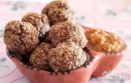 5、 烤箱預熱至200℃; 烤盤上鋪好烤紙,用湯匙將混合物舀成丸子狀,排列在烤盤,烤20分鐘即可。