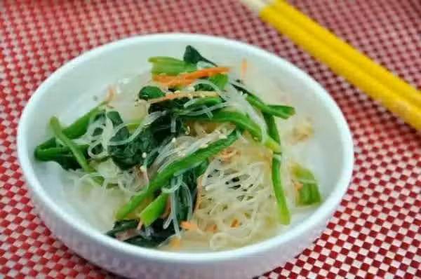 輔料:粉絲100克;胡蘿蔔0.5根;米醋3勺;鹽適量;橄欖油適量;熟芝麻1勺;香油適量