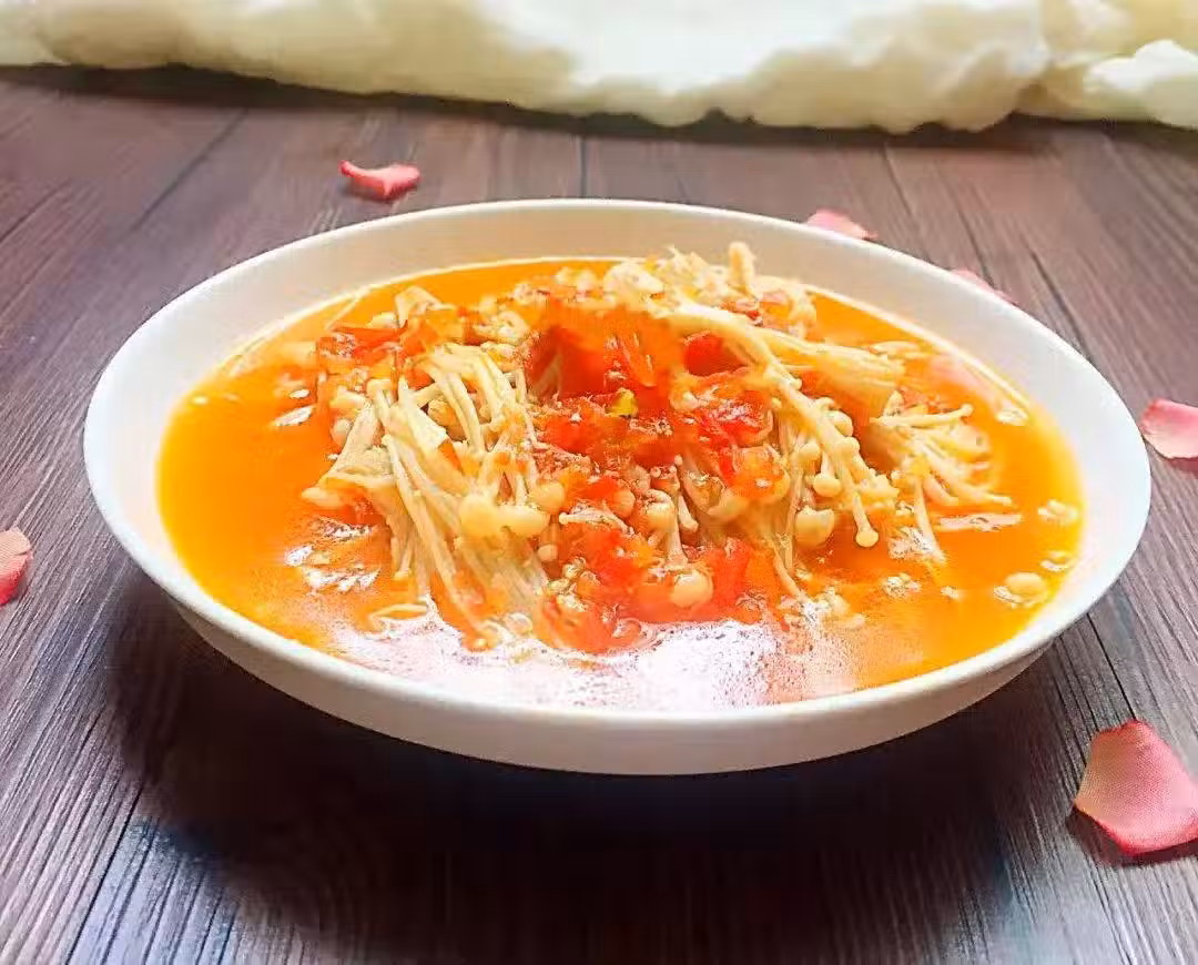 1. 將西紅柿洗乾淨切成碎塊;2. 把金針菇根部切掉,掰開,焯水;3. 鍋內放油,把西紅柿放裡面炒三分鐘左右;4. 倒入適量的番茄醬,繼續翻炒,加適量水把西紅柿炒化;5.倒入焯好的金針菇,放適量的鹽炒勻即可。