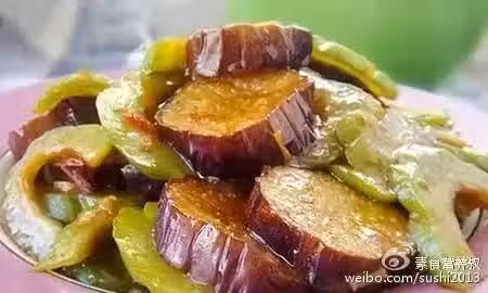 3、另起鍋熱油,爆香薑末、黃豆醬,加入半小碗水、生抽、蘑菇精,再倒入茄子、苦瓜炒約2分鐘,勾欠即可出鍋。