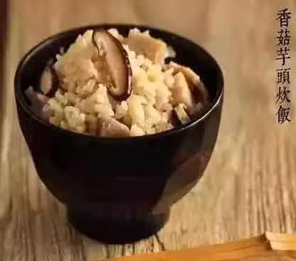 米飯1杯、芋頭200g、香菇3朵、鹽1/2小匙、金蘭醬油1大匙