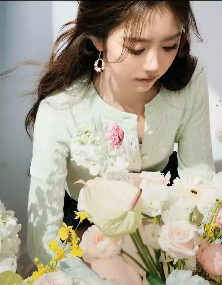 譚松韻化身插花少女,,纖細小蠻腰身材好,淑女范兒!