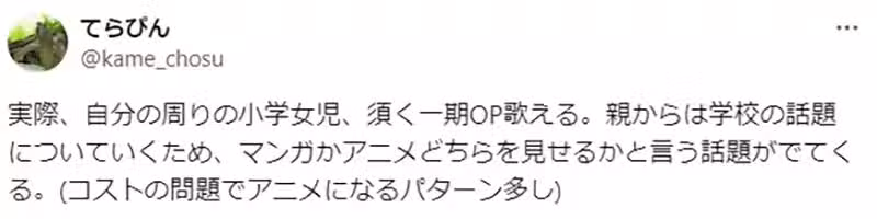 「我妹也是小學的時候就開始看《【我推的孩子】》,但老實說我也覺得這不是給小孩看的作品吧……劇情太血淋淋了。」