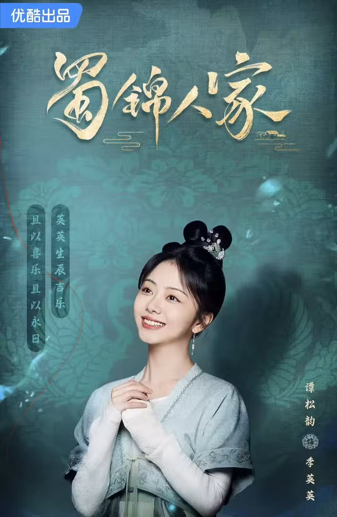 譚松韻的新劇《蜀錦人家》改編自同名小說,講述:譚松韻飾演的唐代益州浣花染坊的小姐季英英,學得家族染色秘方之術,將蜀錦發揚光大,帶往絲綢之路傳播海外,被大唐封為織染使的勵志傳奇故事。