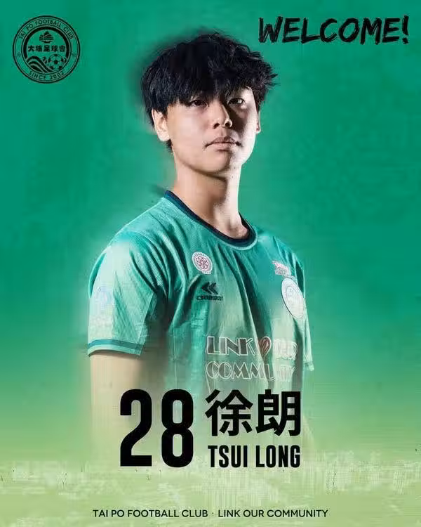 大埔足球會社交平台官宣徐朗加盟:「大埔足球會歡迎徐朗來投!現年僅十七歲的Karson小時在大埔區參與本會之少年隊,其後轉到傑志足球學院接受培訓多年,更在今夏重返啟蒙地追尋職業足球夢。 」照片中可以見到徐朗穿上28號綠色球衣,一臉認真地望著鏡頭,有型有款。而事後徐榮亦有轉發該帖文,恭喜兒子夢想成真及鼓勵他繼續努力。