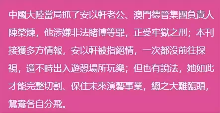 上個月,台媒爆料安以軒從未去監獄看過丈夫,原因是擔心兩個子女無人照顧。