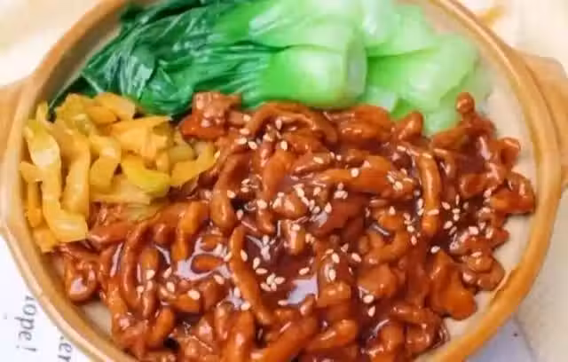 2、鍋中放油,放入肉絲翻炒至變色,加2勺生抽+1勺陳醋+半勺老抽+1勺黃豆醬+半碗水煮三分鐘,最後倒一些水澱粉勾芡即可。