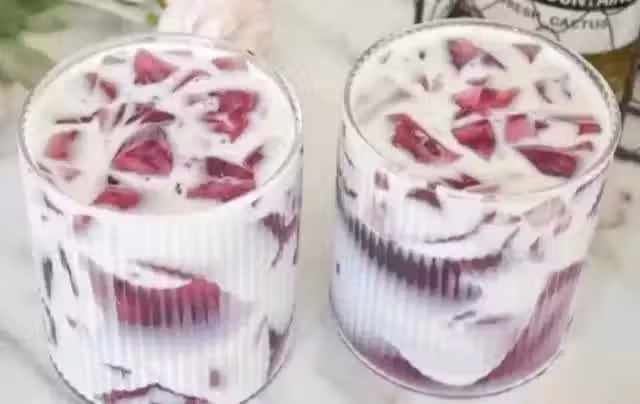 葡萄皮150克,清水500克,白涼粉20克,玉米糖漿50克,牛奶適量