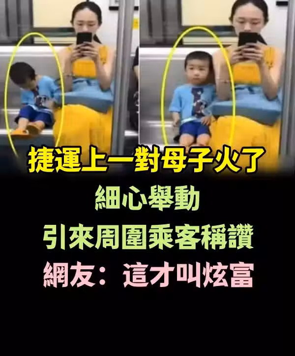 捷運上一對母子火了,舉動引來周圍乘客稱讚,網友:這才叫炫富