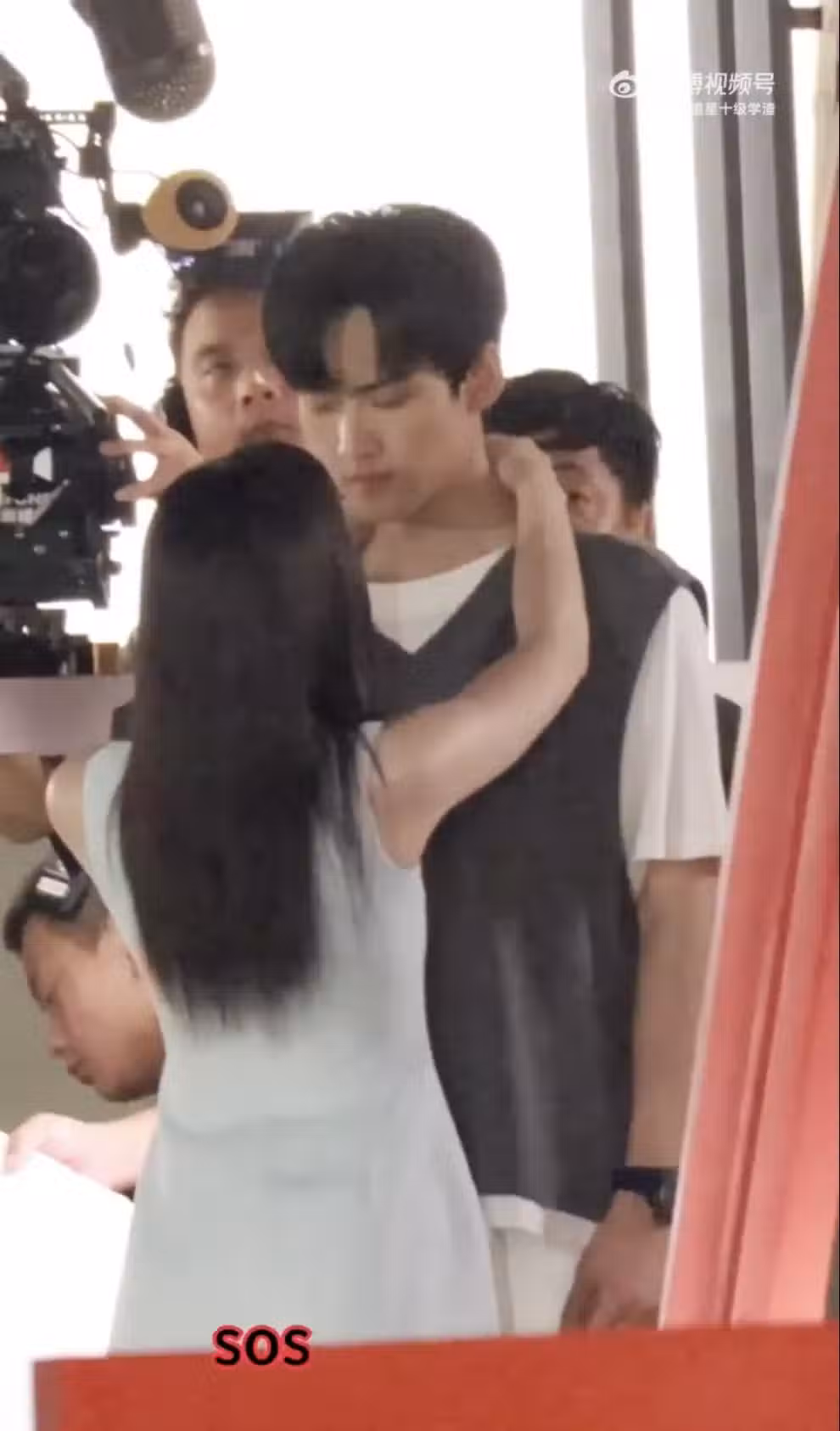 陳妍希和周柯宇正在拍攝新劇,近日吻戲花絮曝光。(圖/翻攝自快樂追星十級學渣微博)