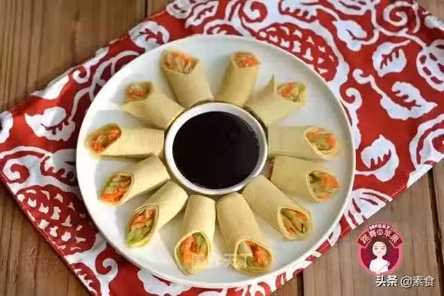 8、找個大盤子,擺成花形,菜料已經用鹽和芝麻油調過味兒了,如果覺得還不夠濃郁,可以來點甜麵醬蘸著吃。