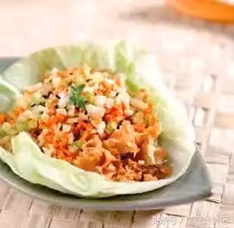 6、將炒好的做法(5)放到圓萵苣片上,再撒上熟黑白芝麻粒裝飾即可