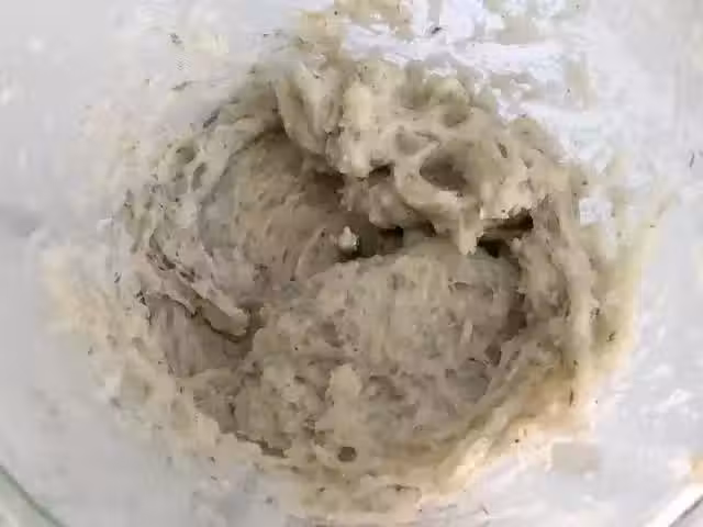 第五步:奶鍋放入適量水燒開,用勺子把蝦泥一勺一勺舀到奶鍋里,煮至浮起來,再把蝦滑撈出來待用。