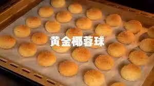 烤箱提前預熱10分鐘。預熱好後,放入椰蓉球,烤箱上下火160攝氏度,烤制18分鐘左右,顏色金黃即可