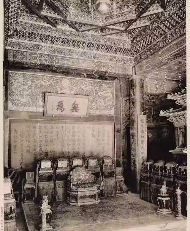 交泰殿交泰殿里皇帝的寶座,匾額「無為」。交泰殿殿名取自《易經》,含"天地交合、康泰美滿"之意,是皇帝和后妃們起居生活的地方。交泰殿小川一真在拍攝時將存放「二十五寶璽」的匣盒罩布全部打開。