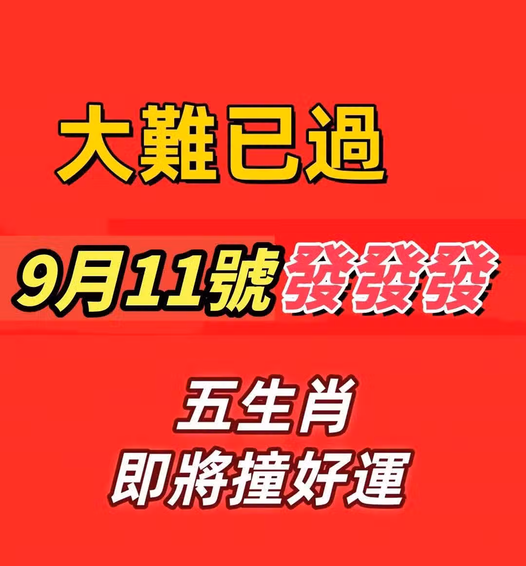 大難已過 今天9月11號開始 五生肖 即將撞好運
