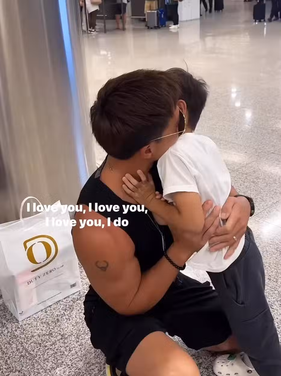 安志傑機場激吻超模妻子!獲妻兒送別難捨難分,子女輪流撒嬌索抱