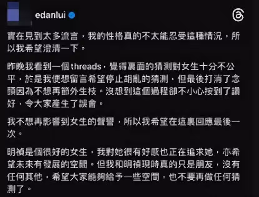 問到被呂爵安公開追求有否壓力,林明禎想等第二日出來再講:「明天我才是主角,大家放過我啦。」她坦言做人很難,擔心說錯話。林明禎曾因前任張軒睿在網上認愛後很快分手,她表示沒陰影,看到舊情被報導翻炒也嚇一跳,過去多時亦不想再談。