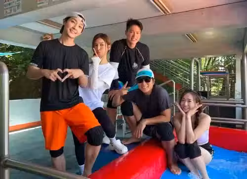 ▲炎亞綸(左起)、蔡黃汝、許孟哲、王仁甫、Una一起到中部錄影。(圖/中視提供)