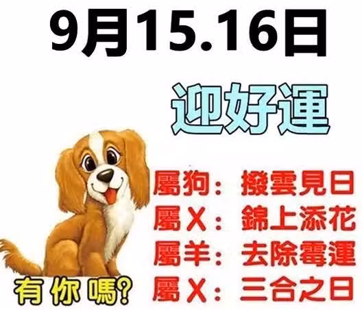 近一段時間以來生肖狗的朋友們運勢一直受到小人的打攪,事情進展的緩慢,看不到希望,進入本周生肖狗的朋友運勢上出現回暖向好的發展。 9月15.16日是生肖狗與太歲的六合之日,六合之日的到來,會有大貴人出現在屬狗的朋友身邊,籠罩在生肖狗的朋友頭上的霧霾瞬間消失殆盡,陽光普照,生肖狗的朋友所有的事情都會有一個快速的向前發展,瞬間生肖狗朋友心中燃起了對未來美好生活的嚮往。 並充滿了信心,充滿了力量。 甚至於少數屬狗朋友心中多年未解決的事情,此時都會有解決的希望。 屬狗的朋友這段時間宜調整自己儘早的適應即將到來的鴻運。
