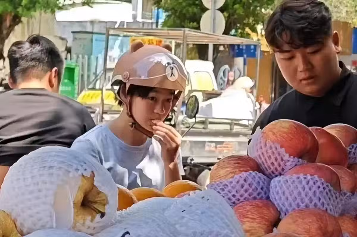 她和哥哥一起,提著籃子到村口的小賣部挑選新鮮的水果。