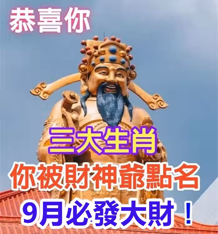 左手財神,右手貴人!「這3大生肖」被財神爺點名,9月必發大財:希望有你