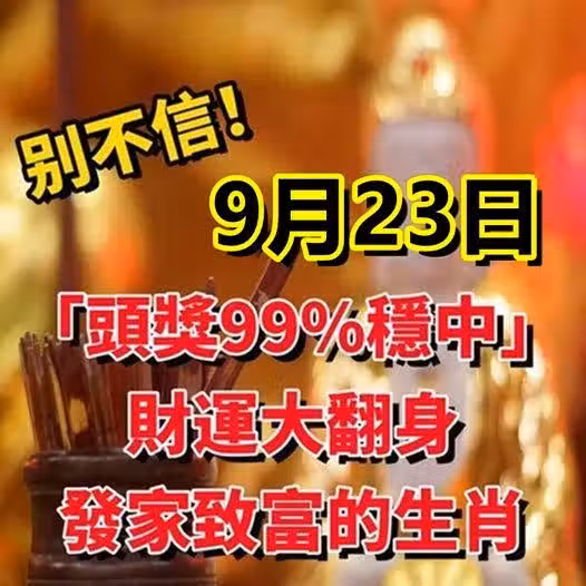 9月23日「頭獎99%穩中」財運大翻身,發家致富的生肖!