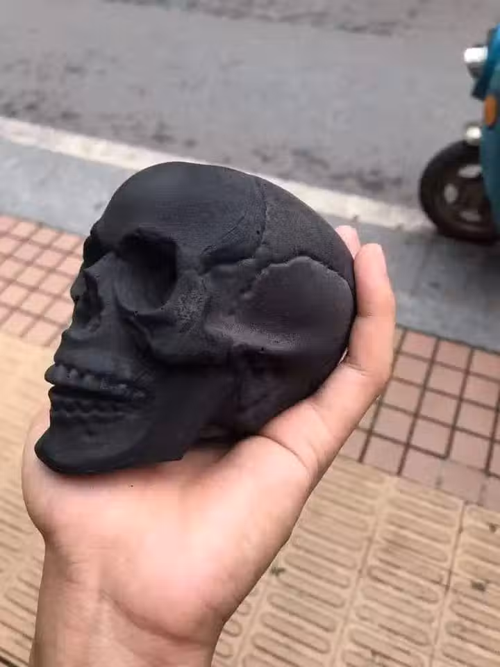 原PO介紹一箱黑壓壓的木炭並非常見的長筒狀,而是手掌大小的骷髏頭造型,點燃後熊熊火焰還會從骷髏頭嘴巴竄出來,簡直像是來自地獄的業火。