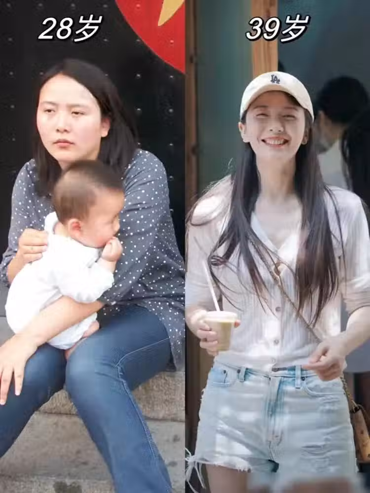 看這組對比其實就能比較清晰的感受到,當不在意自己的外在形象時,整個人顯得很喪。但後期保養,減肥+打扮,雖然年齡增長了十一歲,但看著卻更年輕了!