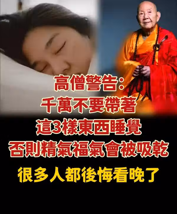 高僧警告:千萬不要帶著這3樣東西睡覺,否則精氣福氣會被吸干!很多人都後悔看晚了!