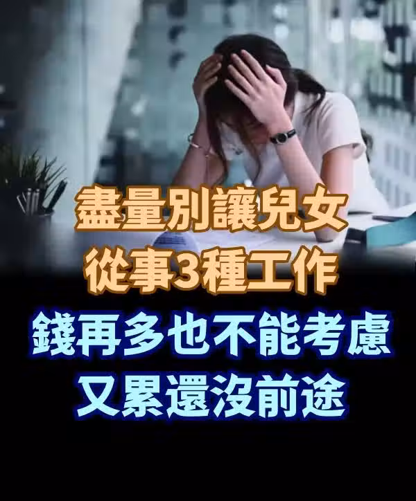 就比如以下這三類工作,父母就要提醒兒女們不要再做了,又累又沒前途,還會白白耽誤了兒女們的大好青春。