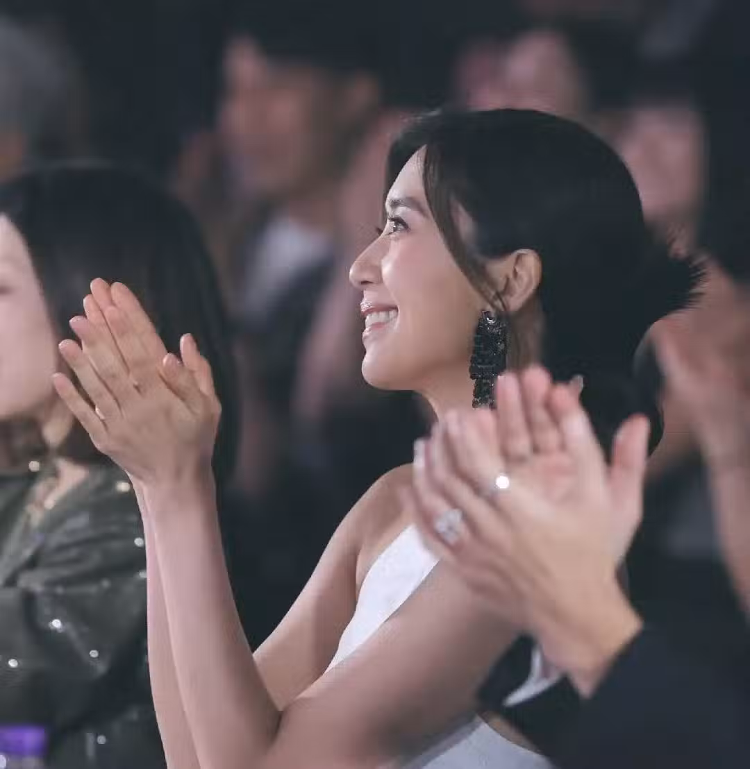 這次現身,黃智雯也明顯有精心的打扮自己,她穿著一襲白色禮服,身材依舊很出眾,髮型方面顯然沒有花太多的心思,但是仍難掩獨特的氣質。