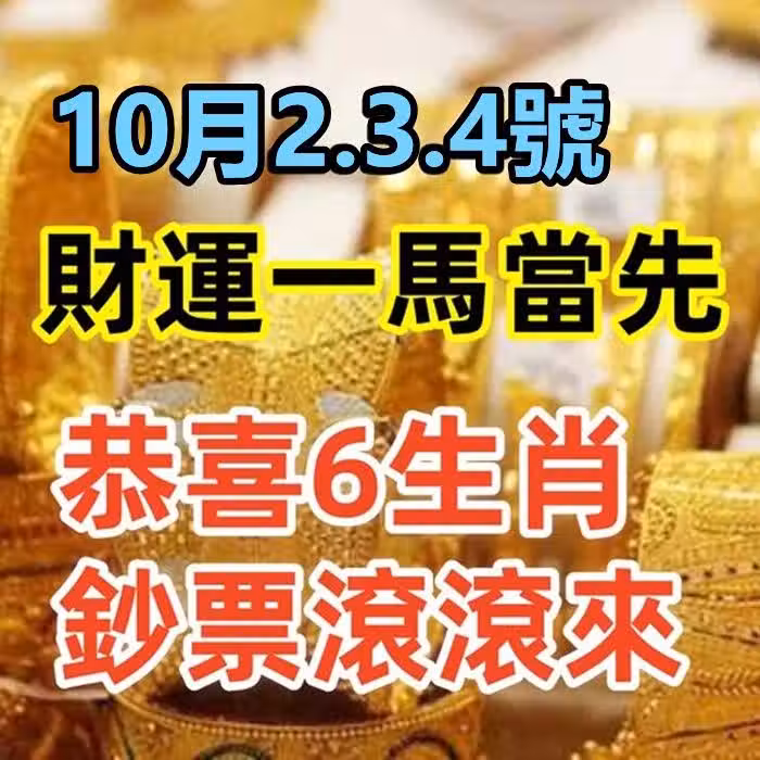 10月2.3.4號財運一馬當先,恭喜6生肖鈔票滾滾來!