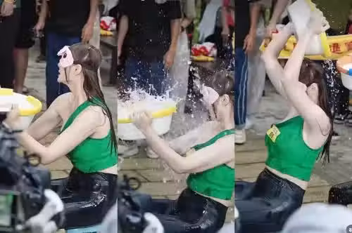 短今被強力潑水「肩帶險滑落」!全身濕透籃籃拿毛巾衝上前超暖