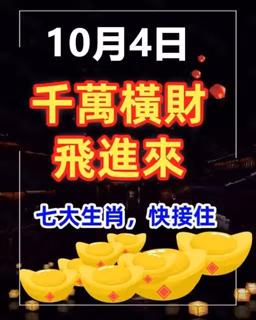 10月4日千萬橫財飛進來,七大生肖快接住!