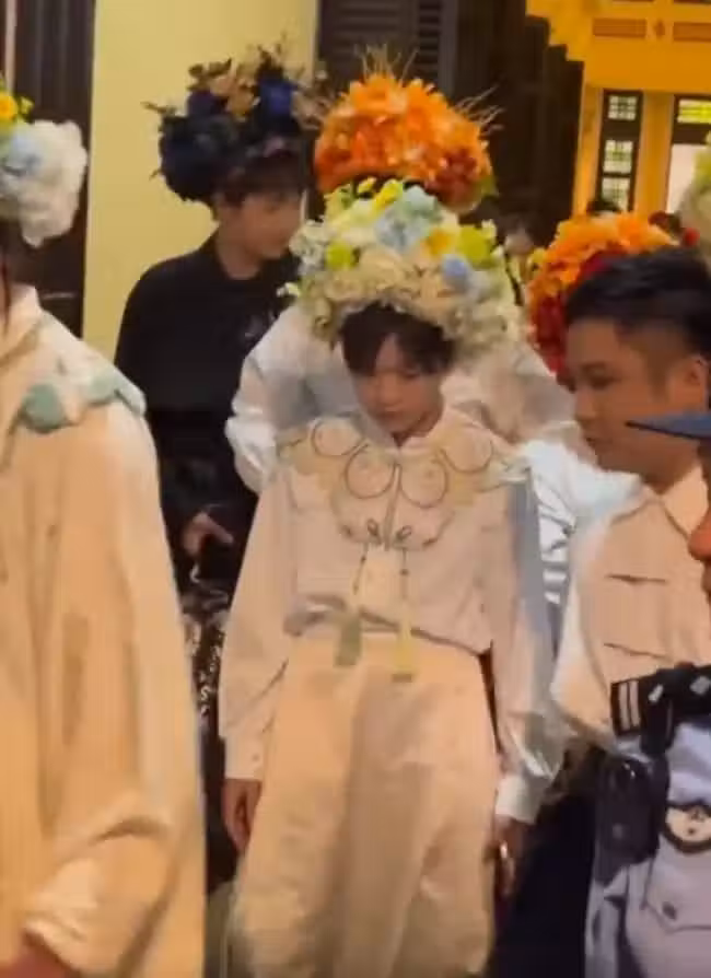 其實全紅嬋剛現身老街,尚未做出簪花造型前便有網友發現了她的蹤跡。當時全紅嬋身穿白襯衫和休閒褲,還戴著格紋的口罩,身邊有一位長發女子貼身保護,身後還跟著一位黑衣男子。之後全紅嬋換好了造型,黑衣男子也穿上了馬面裙,身後還有一應工作人員陪同。