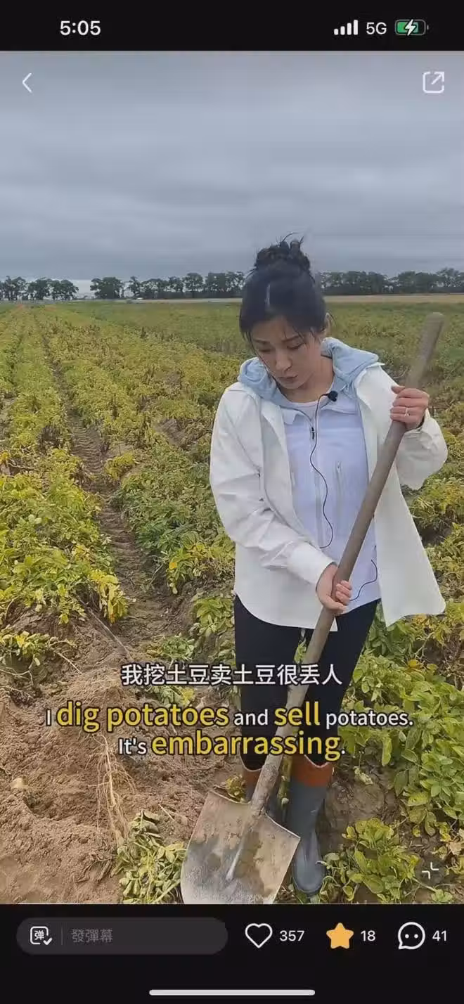 日前周家蔚拍片宣傳國產土豆,更親自下田挖土豆賣土豆,很多網友笑她丟人,不過她則認為是助農活動,很有愛國意義。