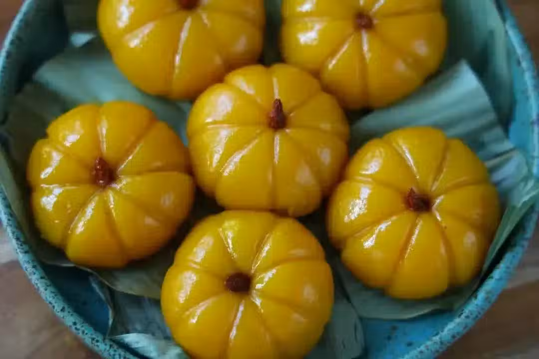 8、秋天的南瓜真的清甜有味兒,而且營養豐富,不管是口感還是營養都非常好。趁著上市的季節,要多吃一些,可以做成各式各樣的美食,比如今天的南瓜糯米糕,軟糯香甜,營養豐富,既可以當早餐又可以當一道好看的甜品!