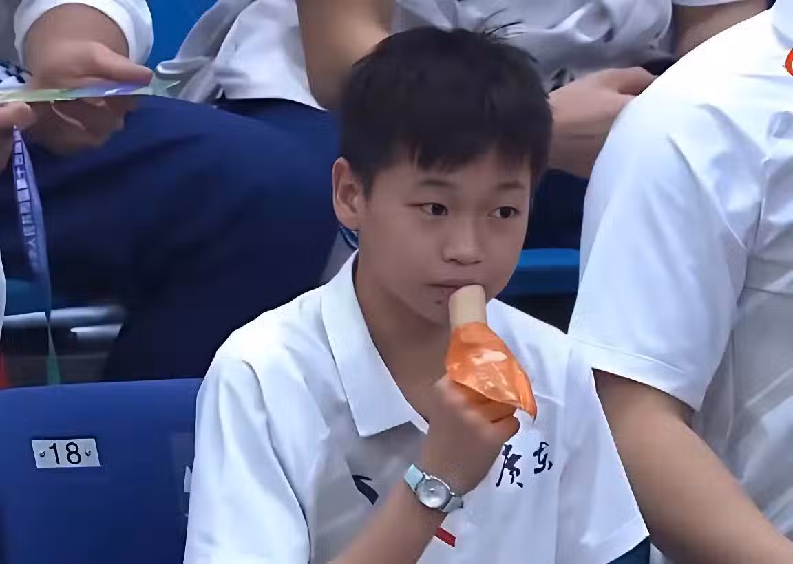 有趣的是,曾經全紅嬋在觀看比賽時,那時的她看上去還有些稚嫩,而坐在觀眾席上的全紅嬋當時還品嘗的一根火腿香腸。