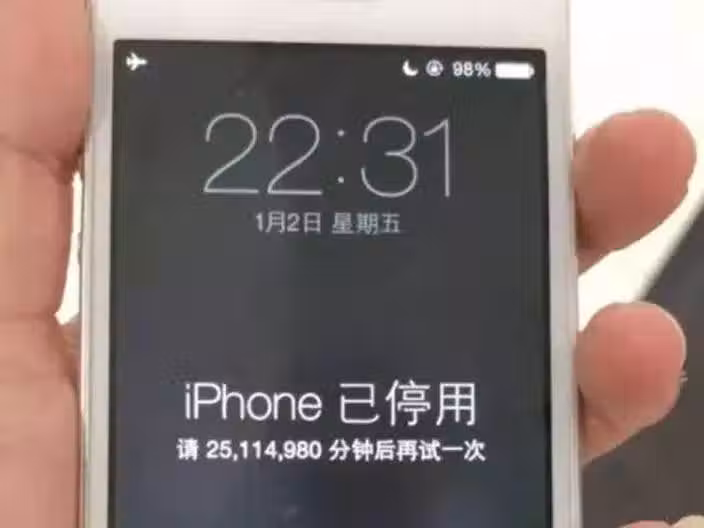 一名陸姓女子的iPhone因為被只有兩歲半的兒子連續輸入錯誤的密碼,慘被鎖機25114980分鐘(約47年)才能再次輸入密碼開機,讓她傻眼又崩潰。
